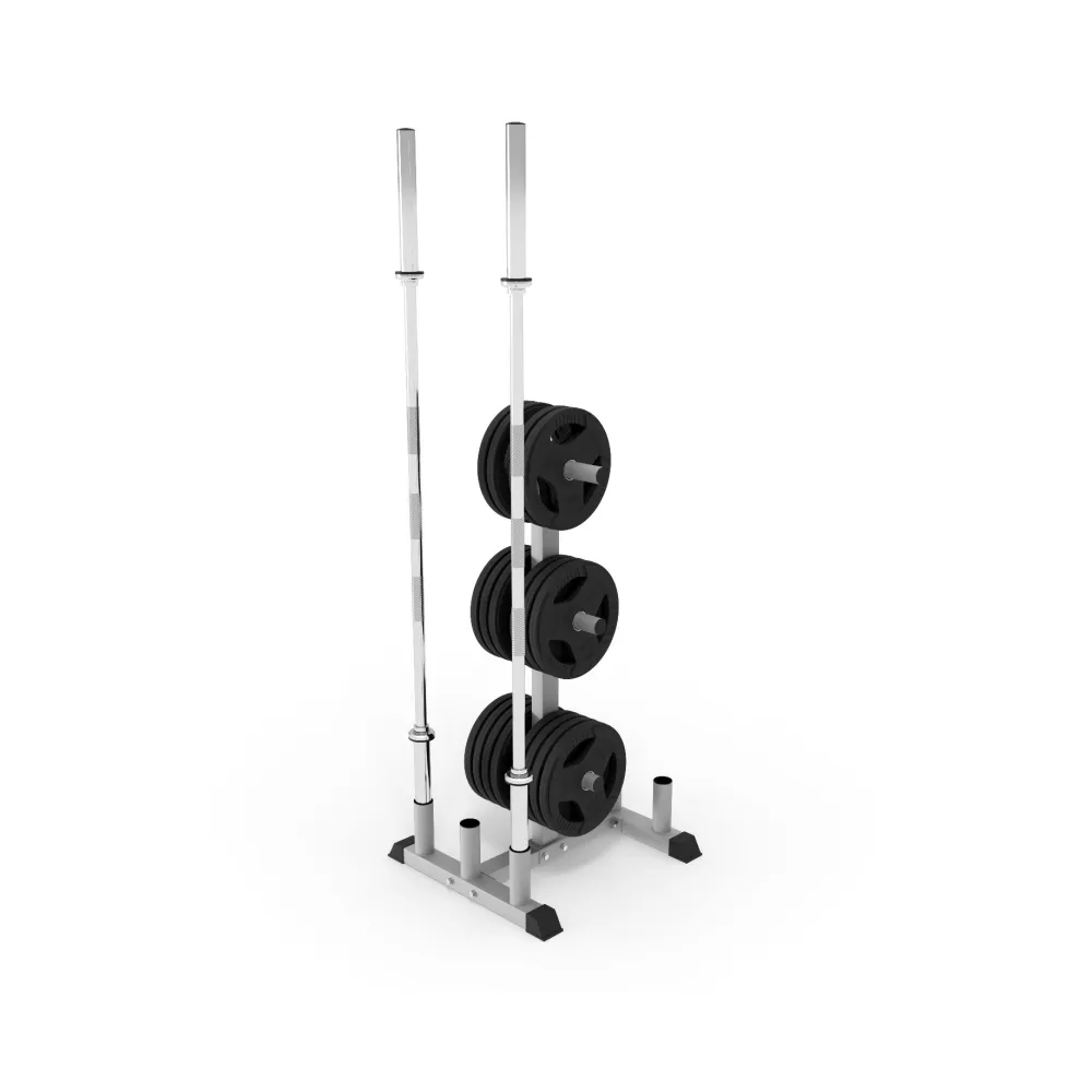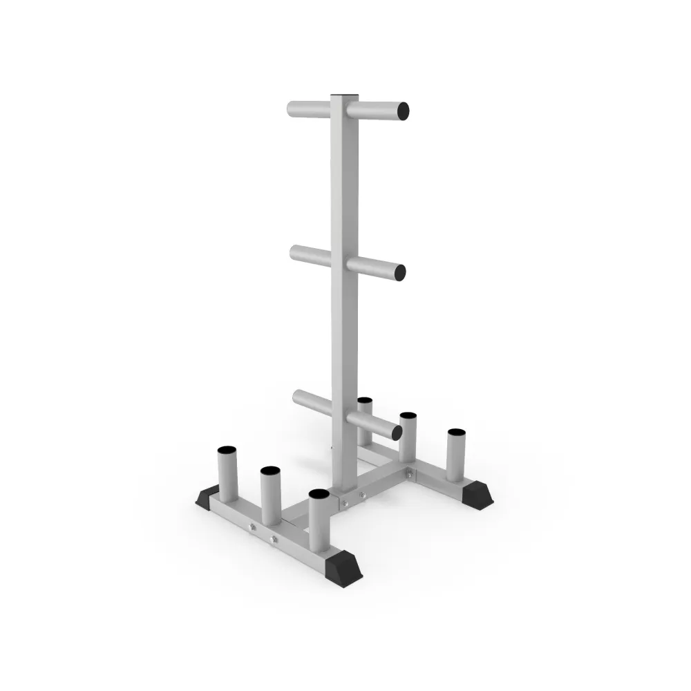 Эта стойка предназначена для значительных нагрузок и может выдерживать до 300 кг. На ней можно разместить по 6 дисков с диаметром 50 и 51 мм, что делает ее универсальной для различных типов снаряжения.