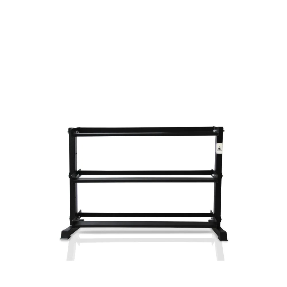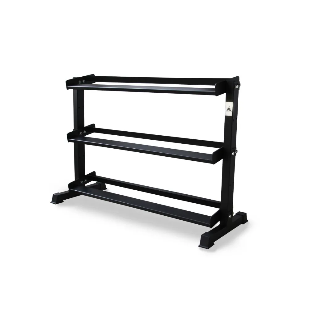 Стойка для хранения профессиональных гантелей DFC из серии POWERGYM RA080 выполнена в чёрном цвете и предназначена для домашнего использования. Эта модель имеет три полки, каждая из которых может выдерживать нагрузку до 150 кг.