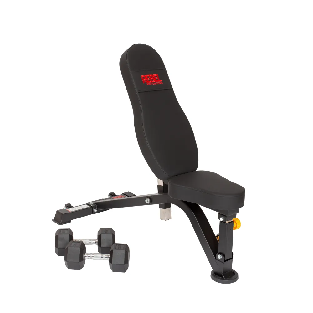 Компактная универсальная скамья оригинальной конструкции Rebel B6 станет отличным дополнением для вашего тренажерного зала или небольшого фитнес-клуба. Эта модель выдерживает максимальную нагрузку до 300 кг и имеет толщину базового профиля 2 мм. Скамья оформлена в благородном черном матовом цвете с порошковым износостойким покрытием.