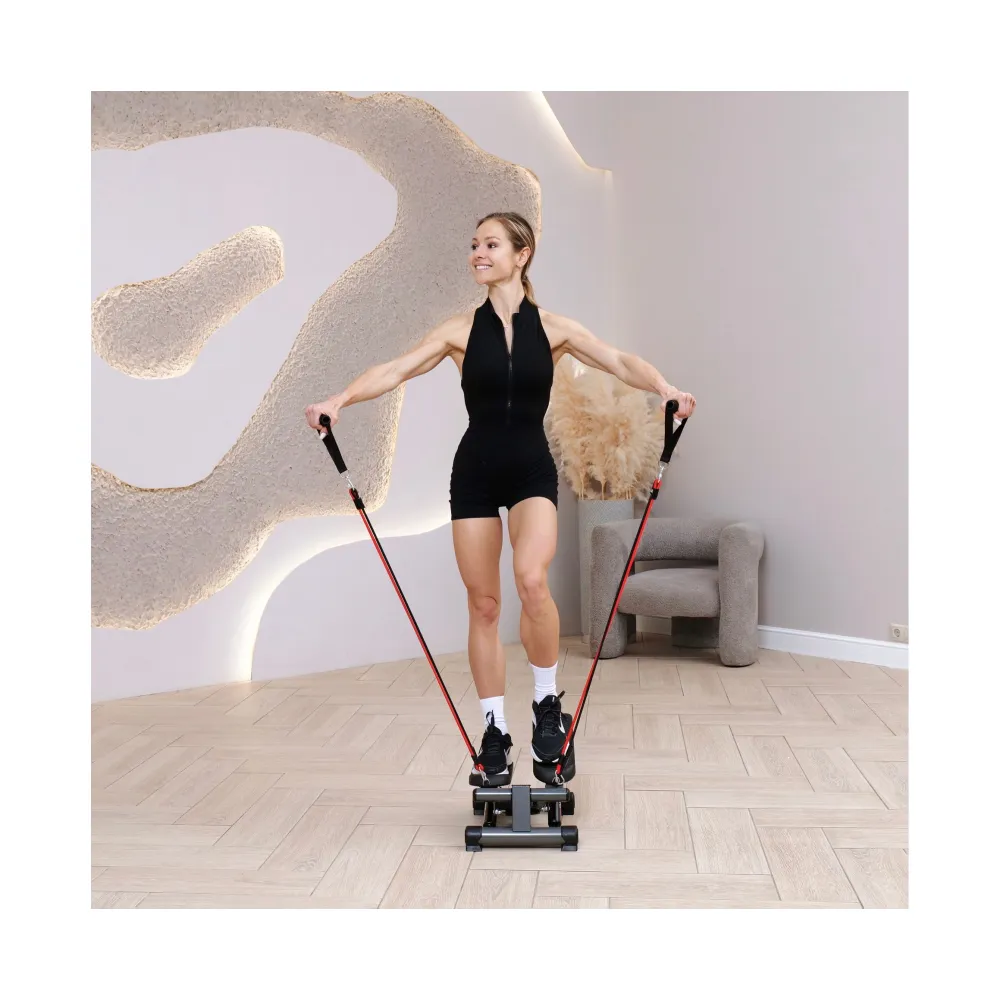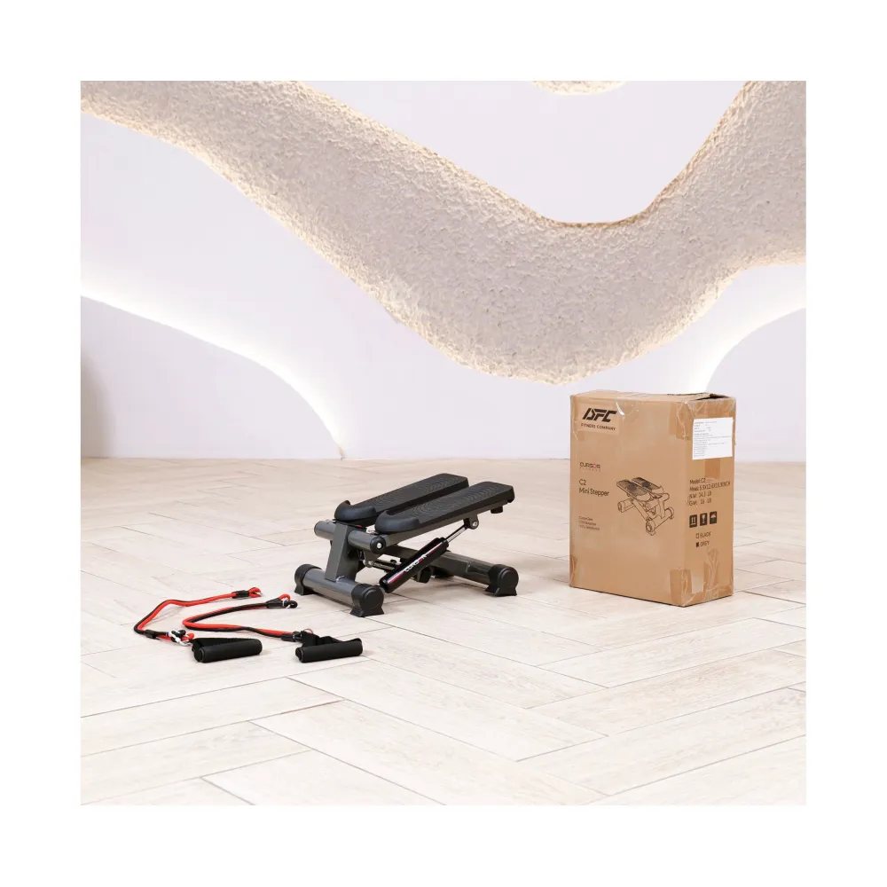 Министеппер DFC CURSOR серого цвета - это компактный, но функциональный тренажер, оснащенный двумя эспандерами для дополнительной нагрузки на руки и плечи.