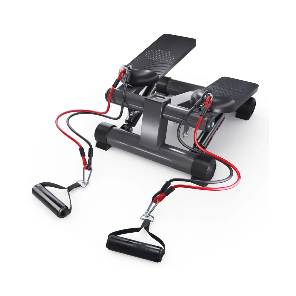 В комплекте с мини степпером идут съёмные эспандеры и инструменты для сборки и обслуживания, а также батарейка LR44 для работы дисплея. Дисплей степера показывает время, количество сожженных калорий, количество шагов, количество шагов в минуту и режим сканирования, делая ваши тренировки универсальными.
